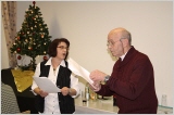 Nachdem Schriftführer Fritz Saalmüller kurz über den Abschluss der Hinrunde und die erreichten Tabellenplätze der einzelnen Mannschaften sowie den noch offenen, weiteren Verlauf der Pokalrunde berichtet hatte, trug das „Laubacher Dreamteam“ Reinhold Schmid und Karin Geyer einen Mundart-Sketch nach Manier von Karl Valentin und Liesl Karlstadt vor. Die Diskussion eines Ehepaars über die Problematik des sich jährlich wiederholenden Heiligabend-Essens „Bratwürste“ löste beim Publikum viel Gelächter und Beifall aus.