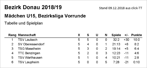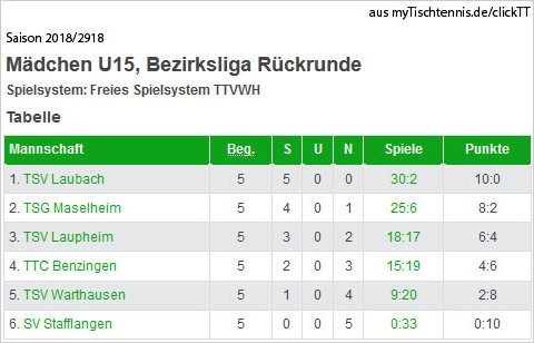 Mit dem Ideal-Ergebnis von 10:0 Punkten beschlossen die Mädchen U15 souverän die Hinrunde.