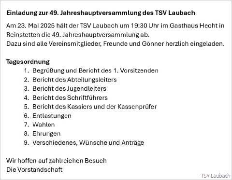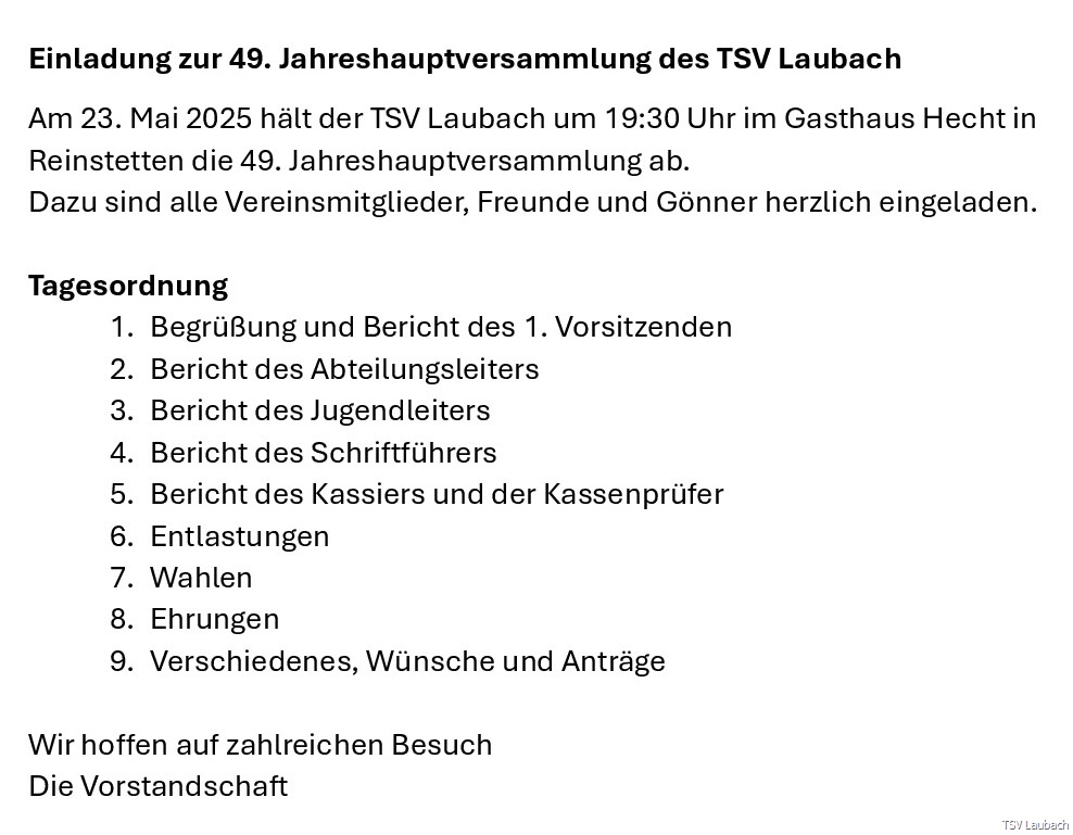 Einladung zur 49. Jahreshauptversammlung des TSV Laubach
