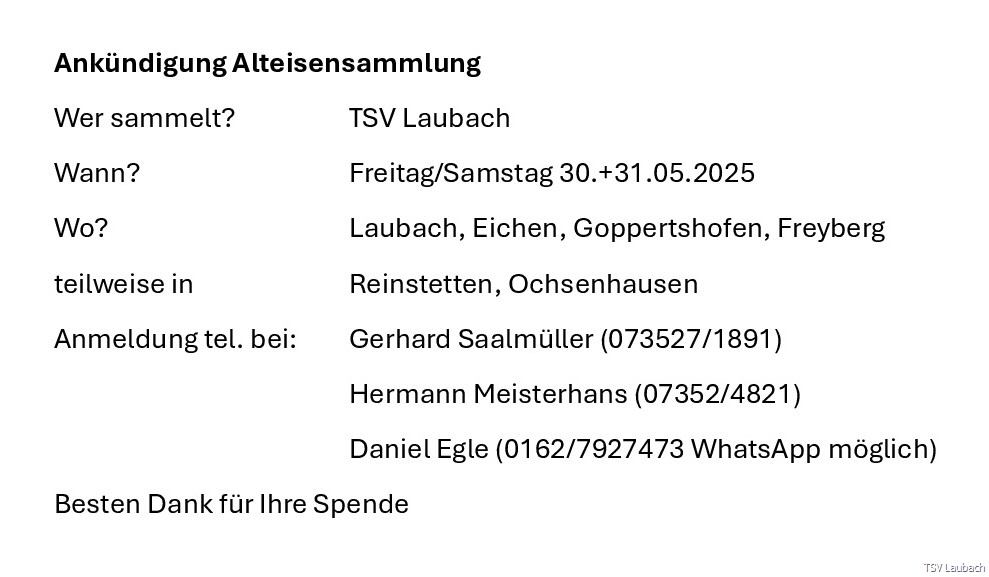 Am 23. Mai 2025 hält der TSV Laubach um 19:30 Uhr im Gasthaus Hecht in